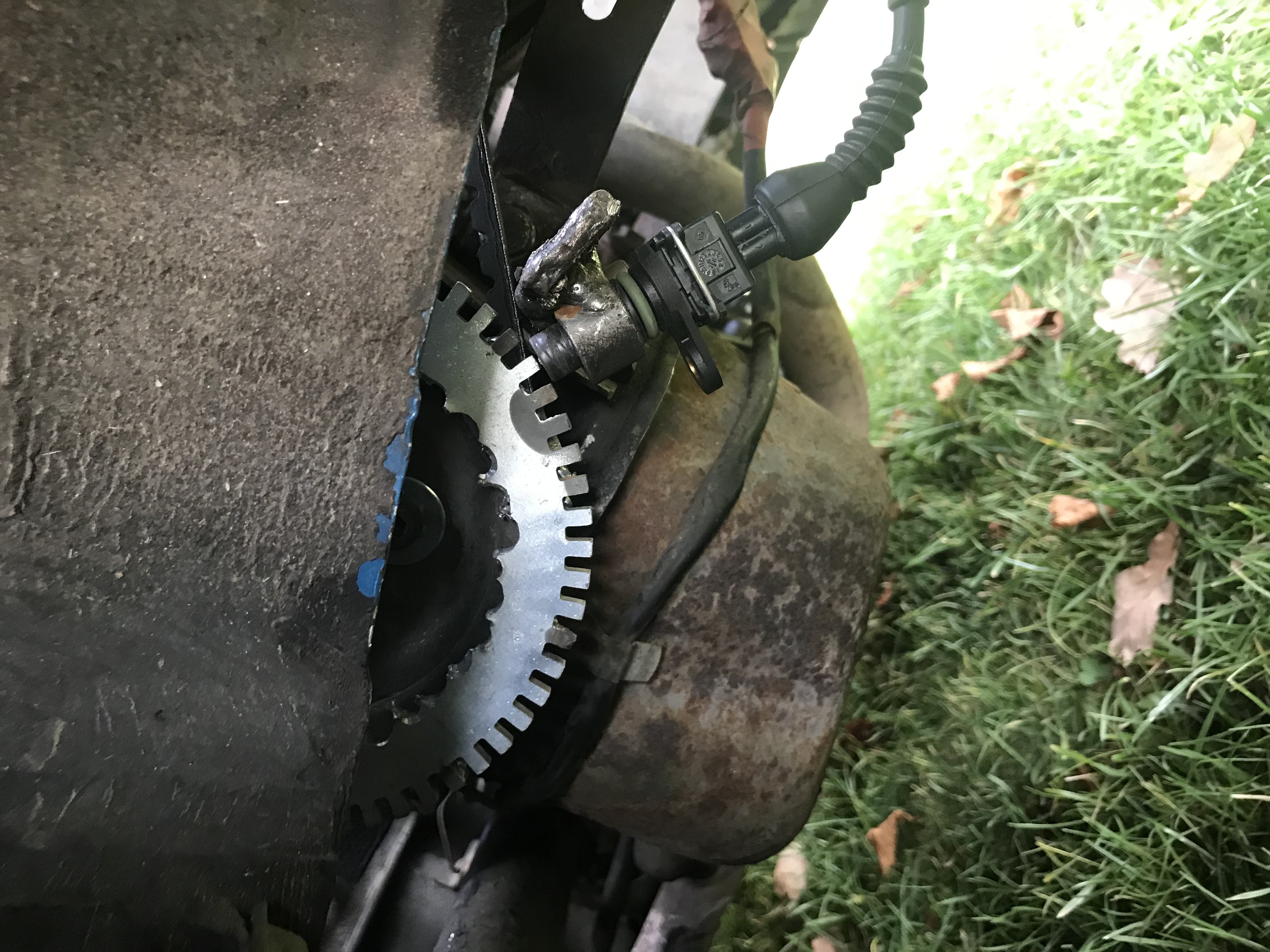 Aaaalso das Triggerwheel war bestellt und wurde dann von hinten auf die Riemenscheibe gepunktet, hatte am Mittwoch noch die Schweißpunkte entfernt brachte allerdings keine Besserung.
