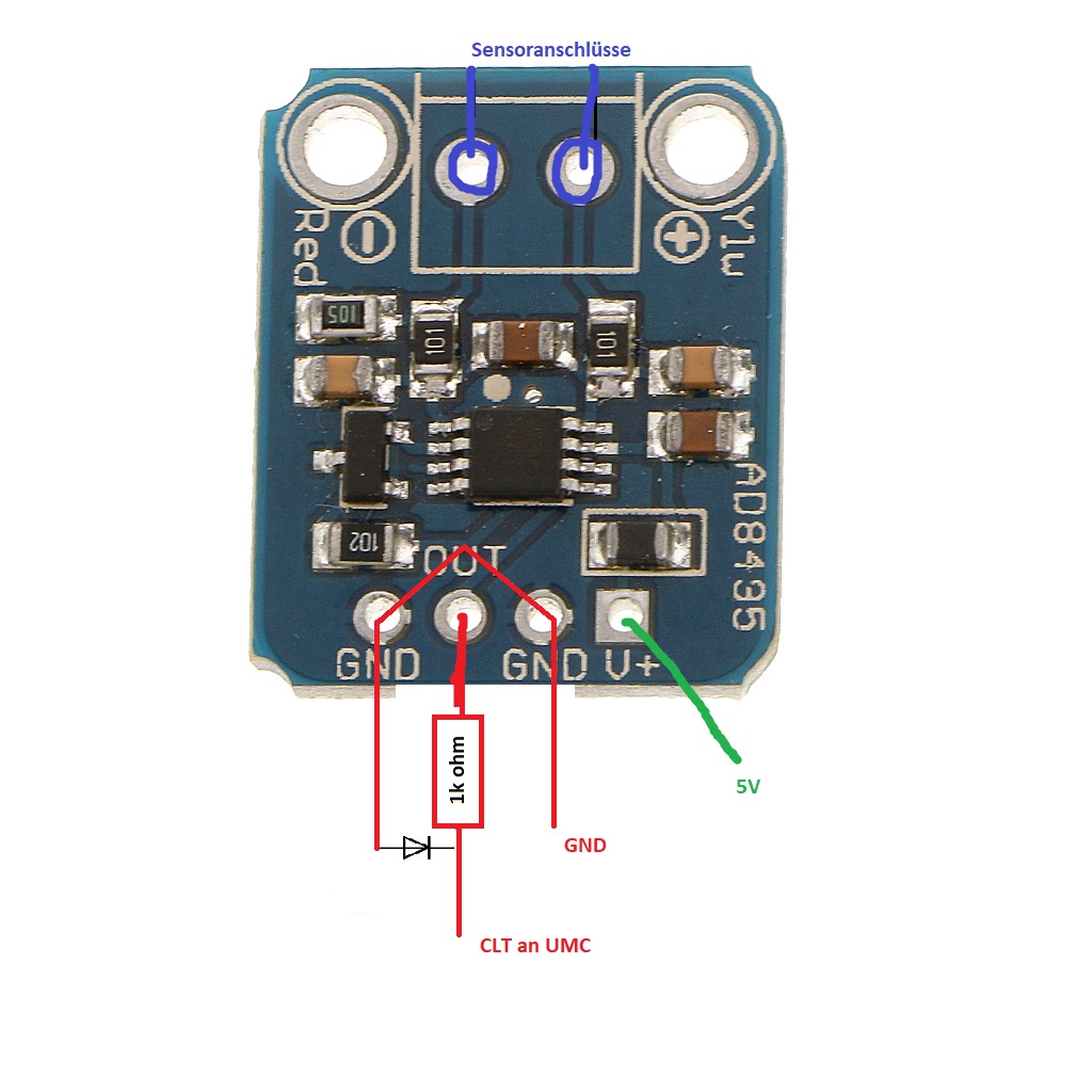 2. Thermosensor inkl. Verstärkerplatine wie in meiner Skizze beschalten