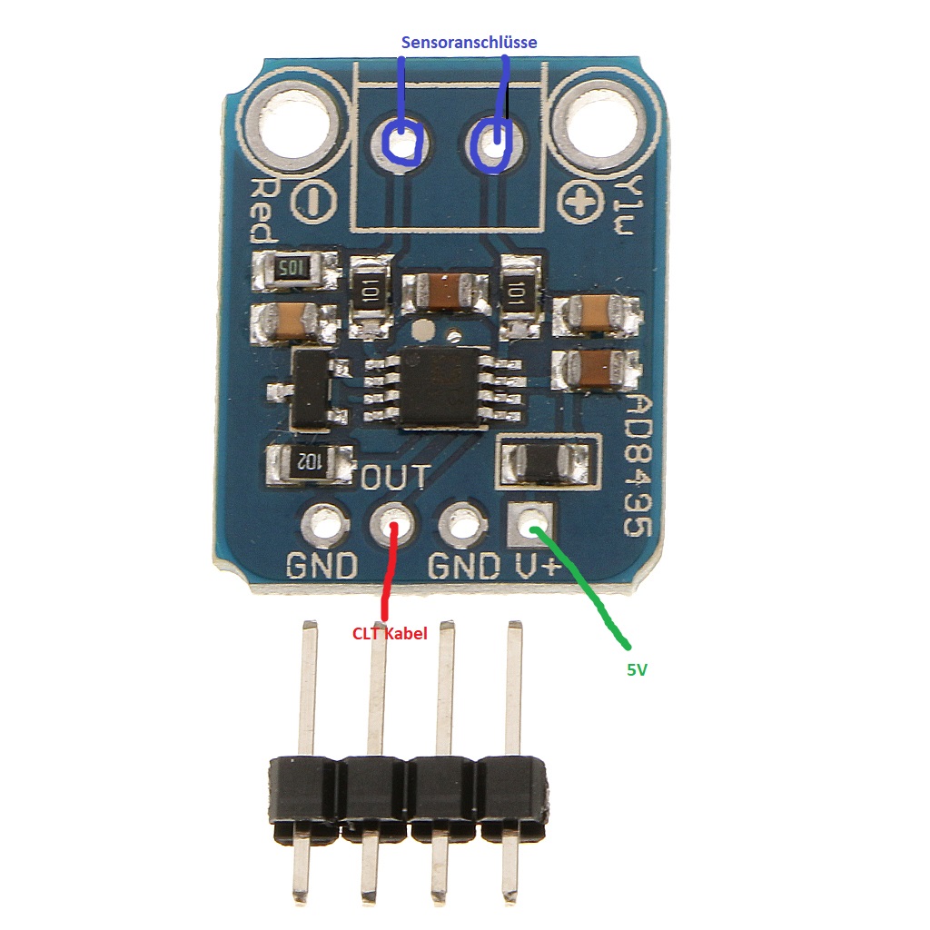 2. Thermosensor inkl. Verstärkerplatine wie in meiner Skizze beschalten