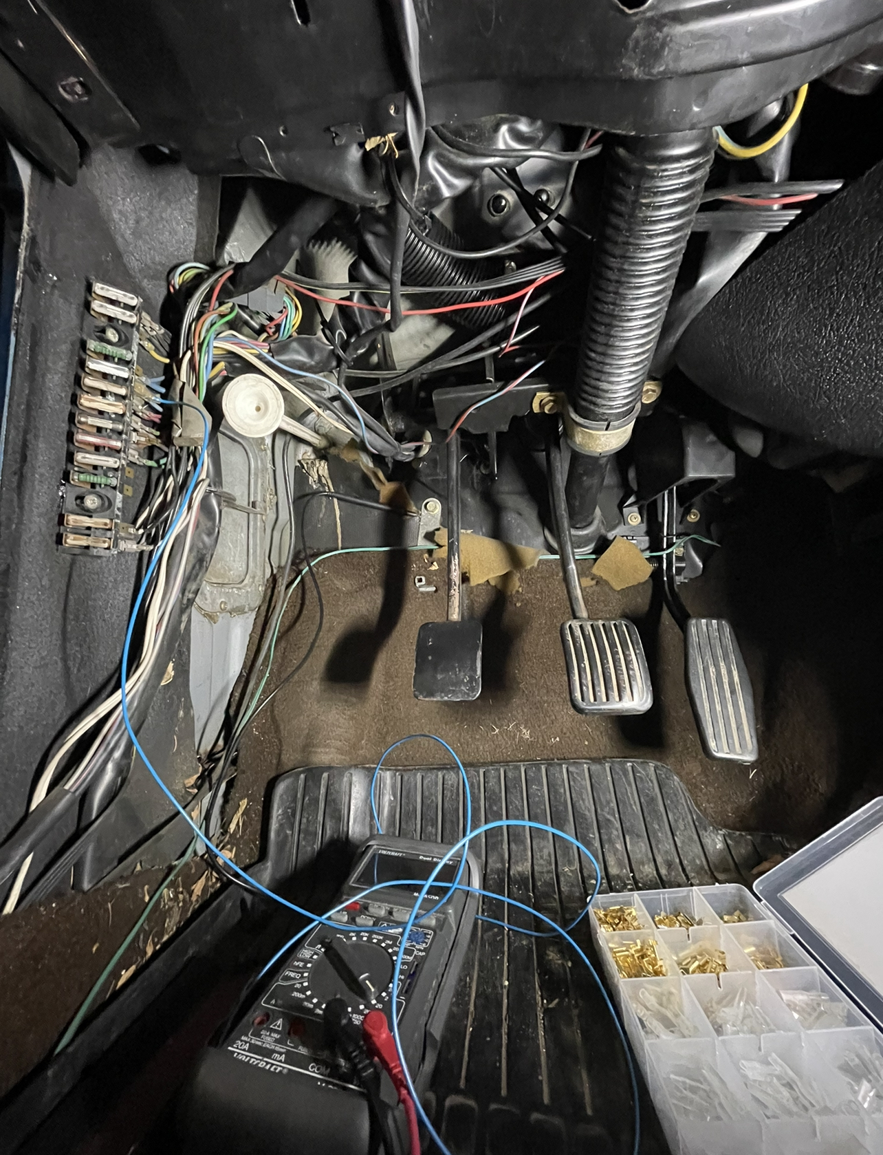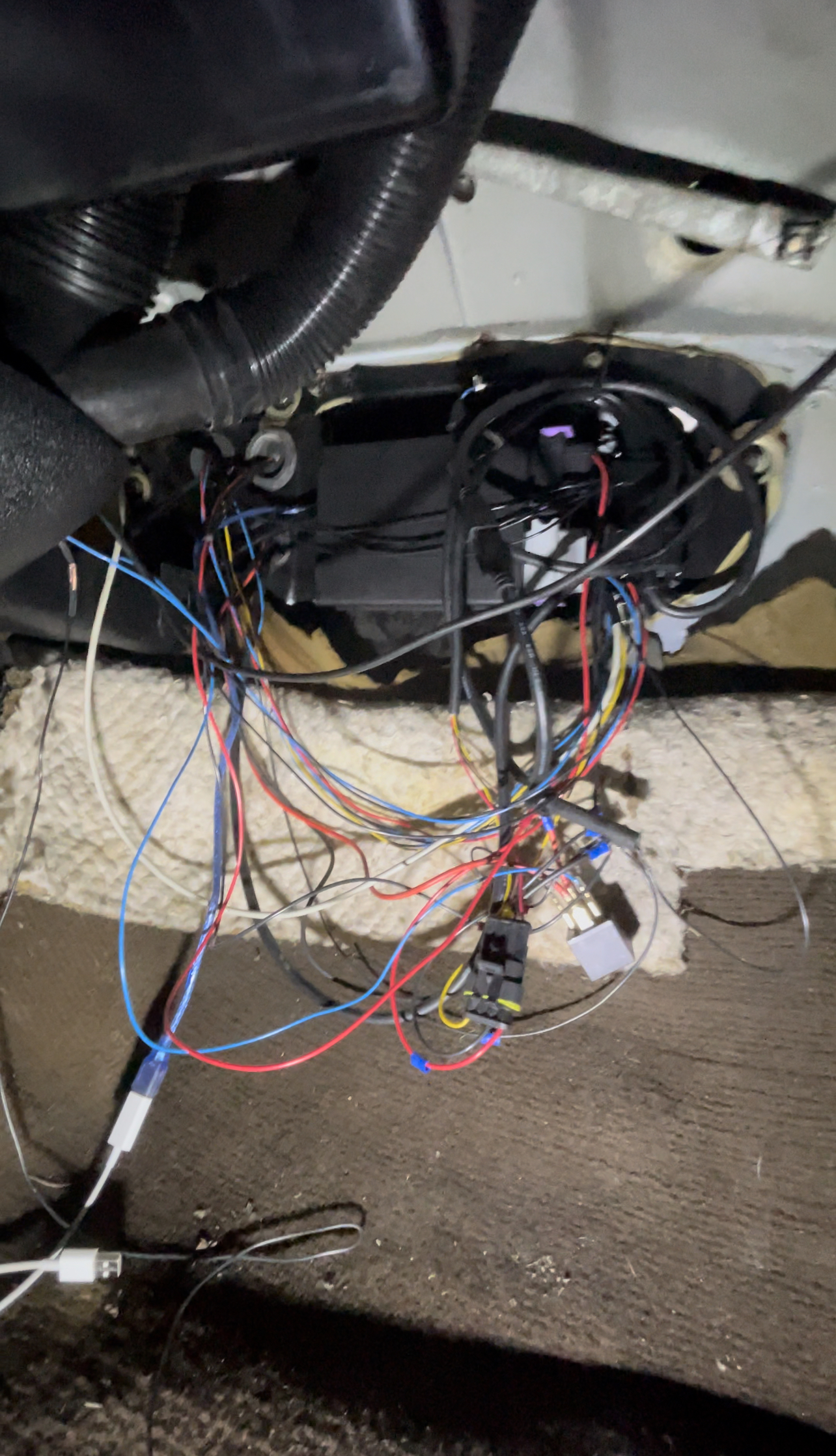 Dann noch ewig um den Kaltstart und so gekümmert und den Kabelbaum, den es ja jetzt in dem Auto gibt, noch schön gemacht und in der Länge gestutzt.