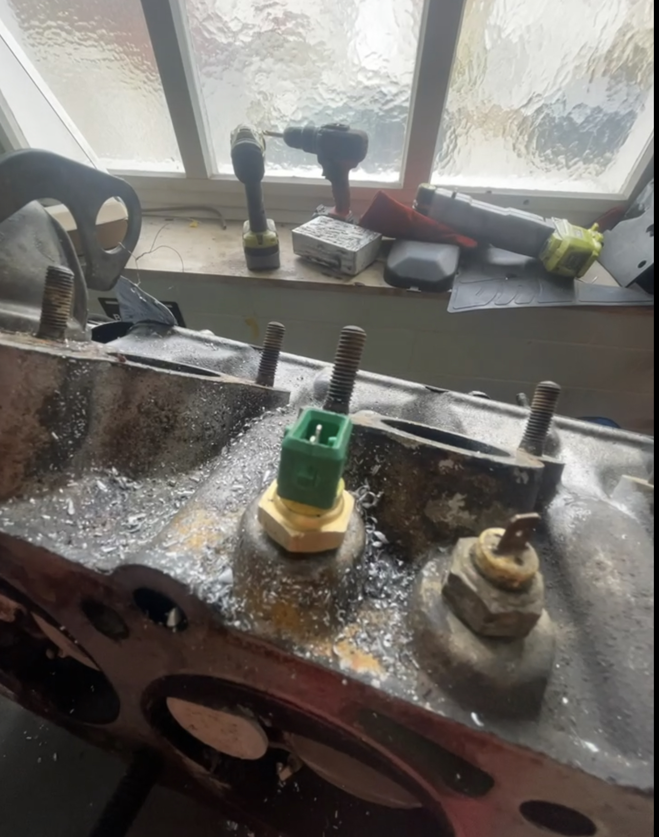 Dann noch nen Temperatursensor im Zylinderkopf nachgerüstet. Wo ich wieder Hilfe von biff hatte der mir nen Gewindebohrer ausgeliehen hat. danke:D