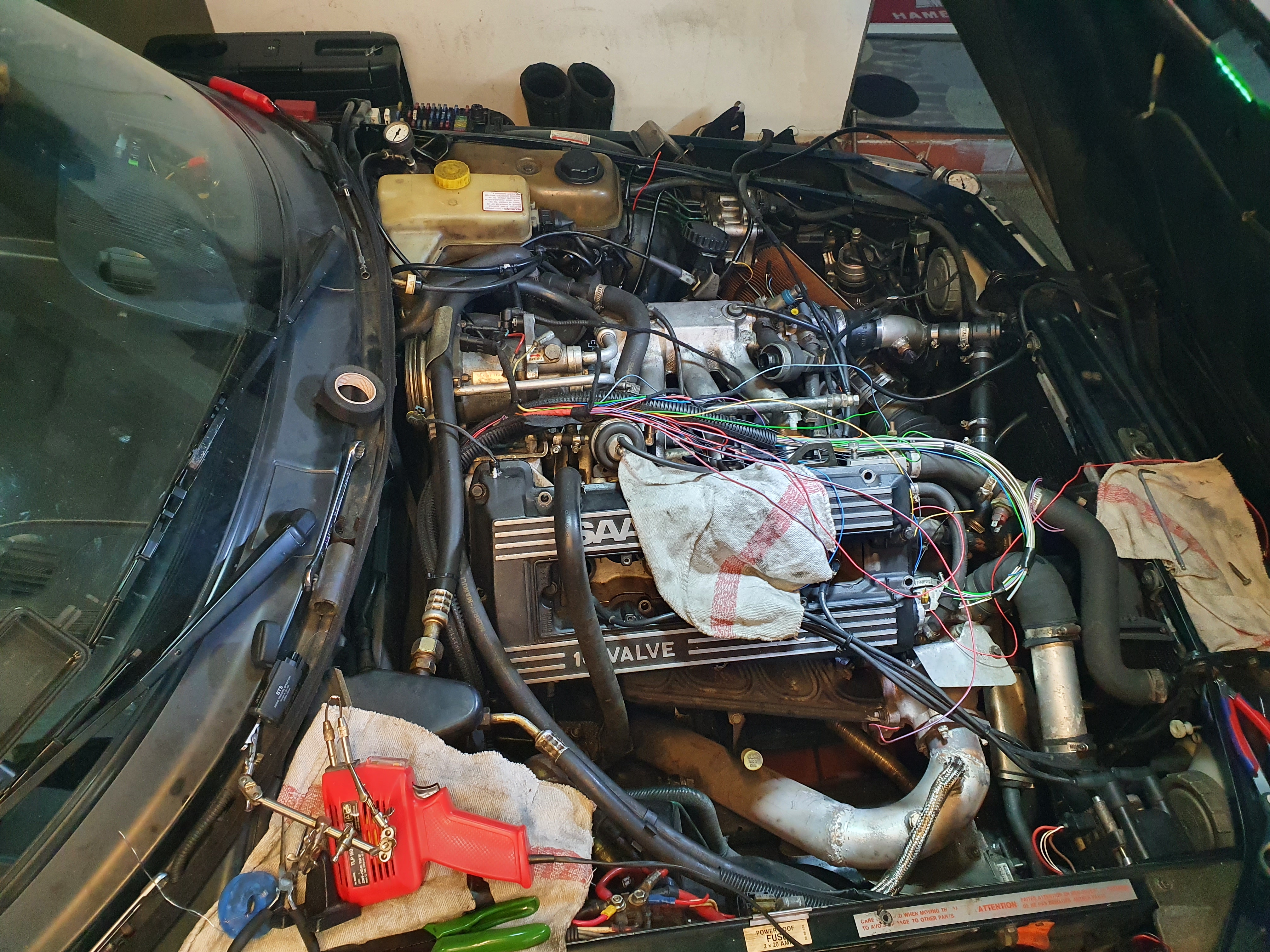 Hatte jahrzehnte versucht mit der originalen Steuerung (Einspritzsteuergerät, Zündung über Verteiler mit Unterdruckdose, Ladedruck über seperates Steuergerät was macht wozu es gerade Lust hat) eine saubere Abstimmung hinzubekommen, aber es geht einfach nicht. Mal läuft er gut, mal zu fett, mal zu mager, mal viel zu viel Ladedruck, dann ruck zuck Getriebe im Arsch (4 Getriebeschäden in 15 Jahren) plus einen fetten Motorschaden weil Gemisch nicht passte.