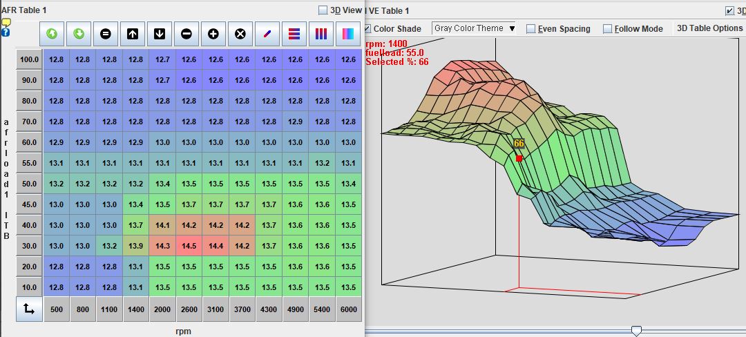 Hallo, mein Motor hat jetzt ca. 500km drauf. Er fährt eigentlich schon ganz gut mit Alpha-N. Aber ich habe einen Bereich, den bekomme ich nicht hin. Bei ca. 2000 -2500 U/min und bei ca. 30% TPS habe ich vielleicht Klingeln oder ein anderes Beschleunigungsgeräusch vom Motor. Der Motor will hier nicht so richtig. Vollast und niedrige Lasten sind super. Er zieht da einfach nicht richtig durch. Bin ich zu fett zu mager zu früh zu spät? Ich weiß es einfach nicht so richtig.