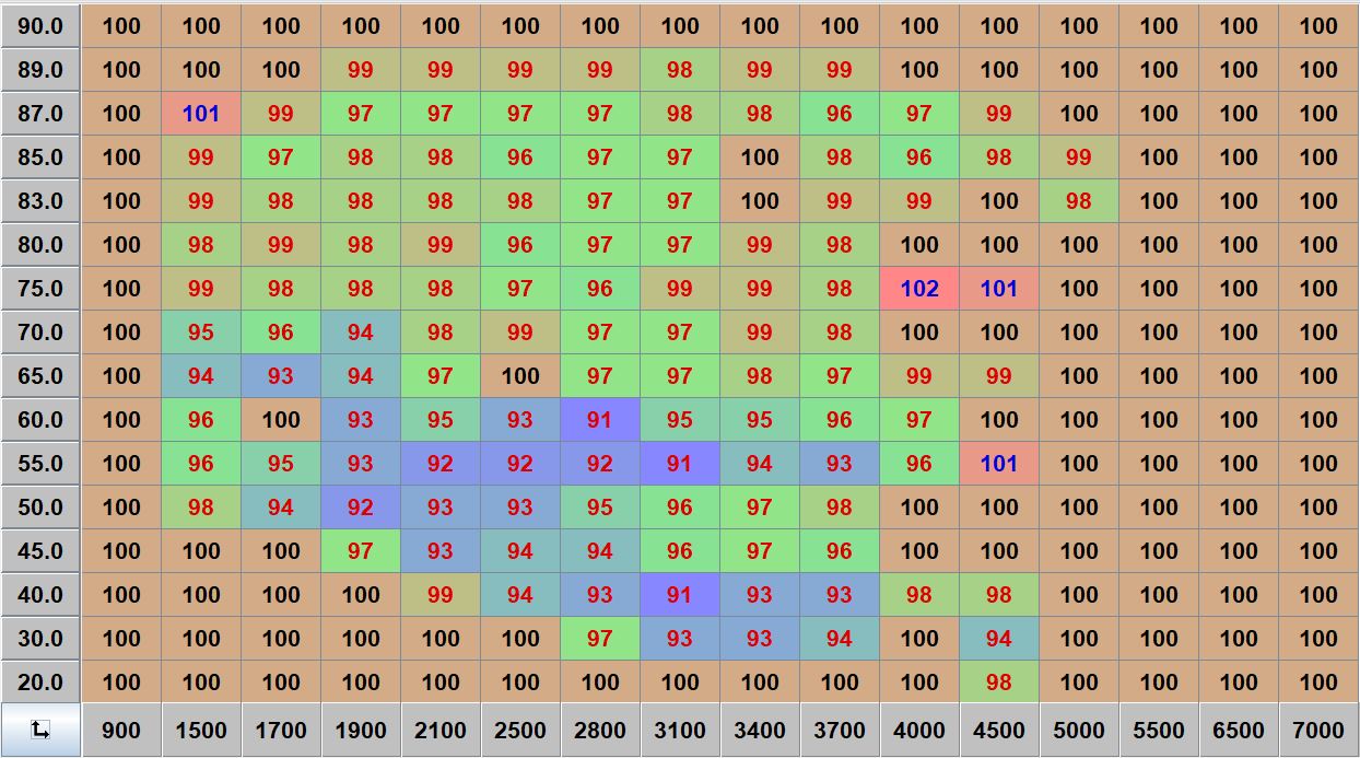 Mit dem Autotuning kam diese Kennfeld heraus. Ich bin überrascht, dass es doch ganz gut passt. Gut 7% Abweichung sind auch schon mal etwas.