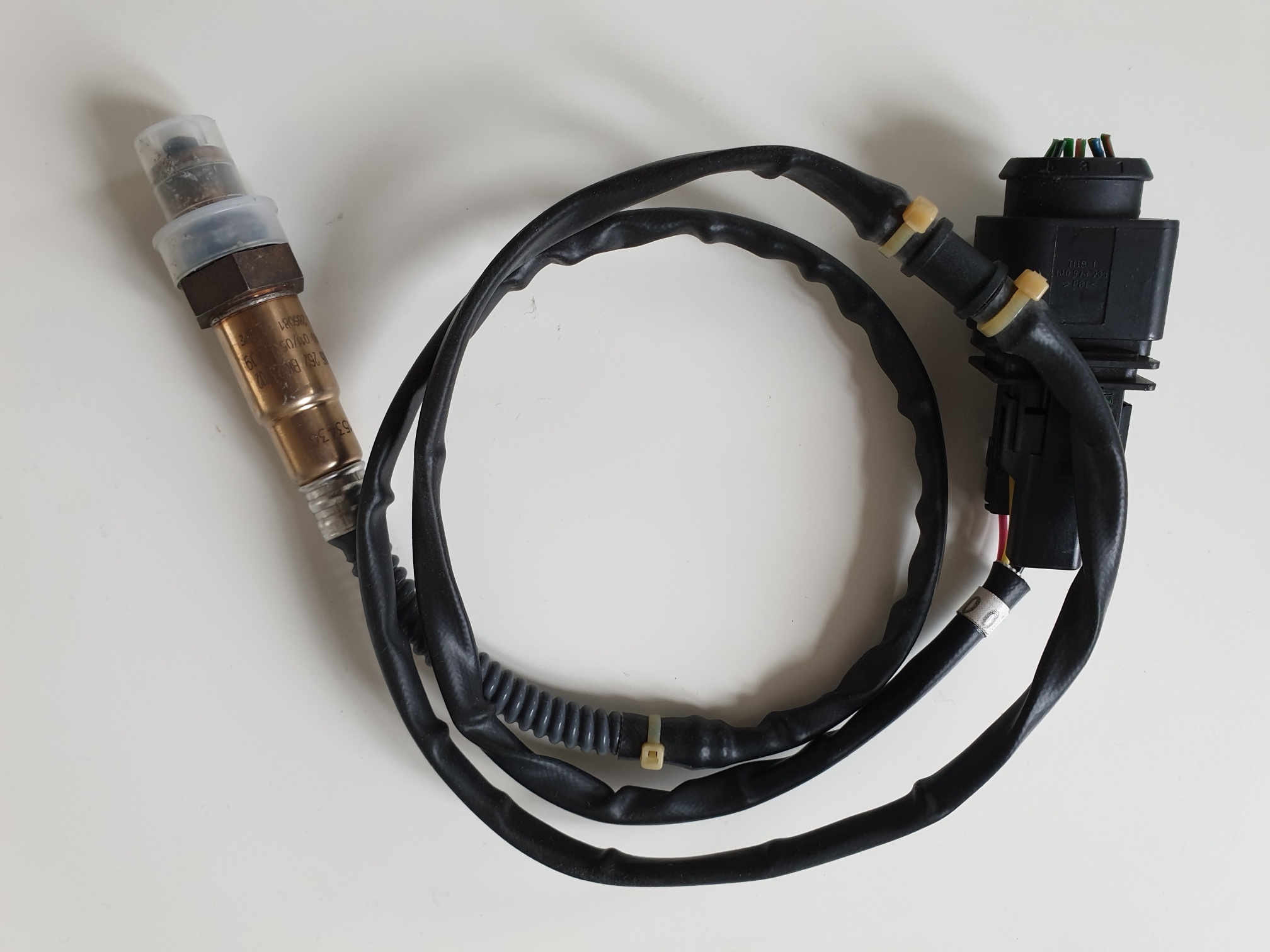 Es handelt sich ebenfalls um eine nagelneue Sonde von VW mit der Teilenummer 06A.906.262.BK bzw. Bosch 0281004150. Sowohl laut Zeichnung als auch laut Bosch Datenblatt handelt es sich um eine 4.9er Sonde, es ist außerdem "LU09" aufgedruckt. Interessanterweise hat sie aber noch den alten, großen 4.2er Stecker. Ich vermute, dass sie gerade in eine Übergangszeit fiel und man den Kabelbaum nicht ändern wollte, daher die merkwürdige Kombi.
