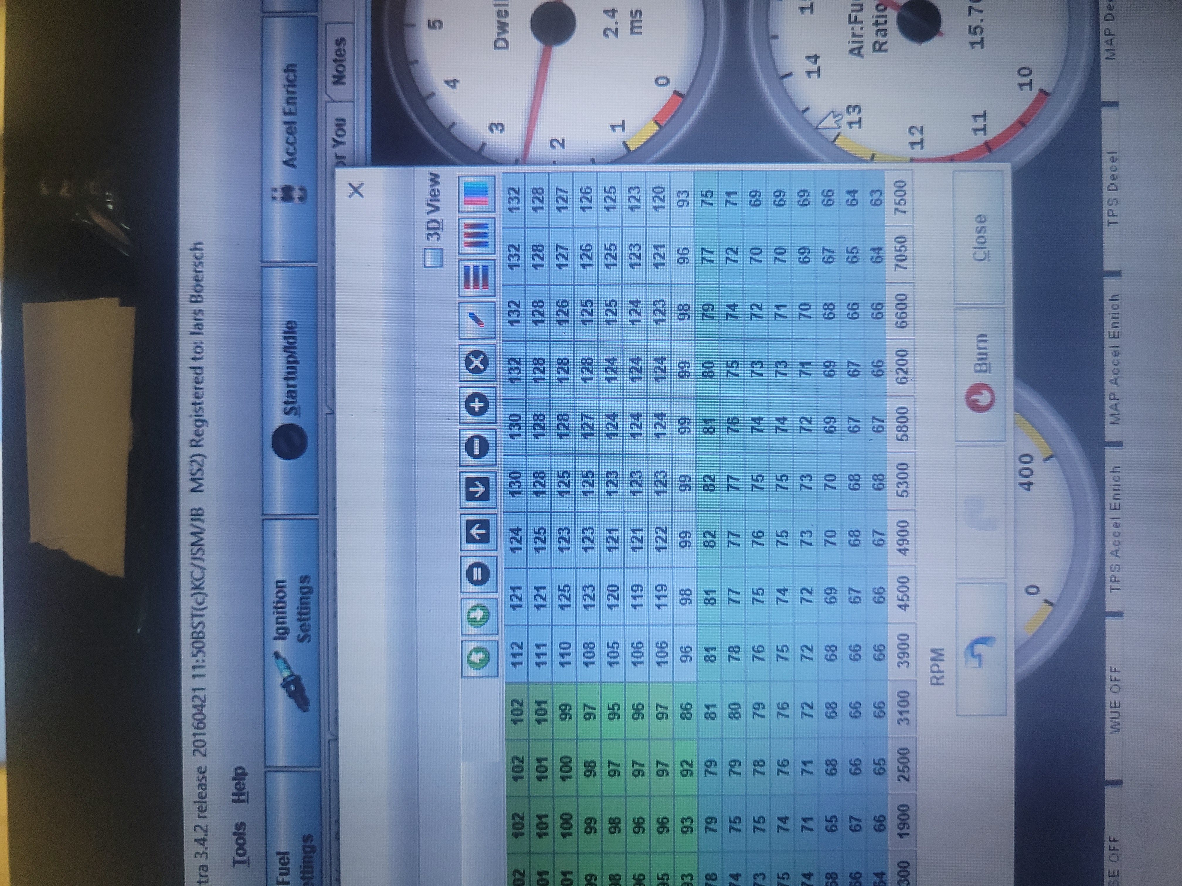 Allerdings fällt mein VE Table ab peak torque nicht wirklich ab mit steigender Drehzahl, sondern bleibt einfach konstant um ein AFR Target von 11.5 zu halten.